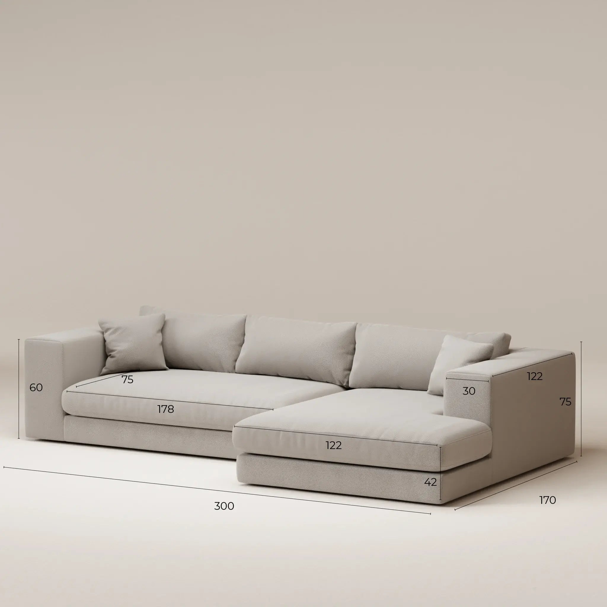 2,5 places • Profondeur 110 cm • Tissu tissé • Cream