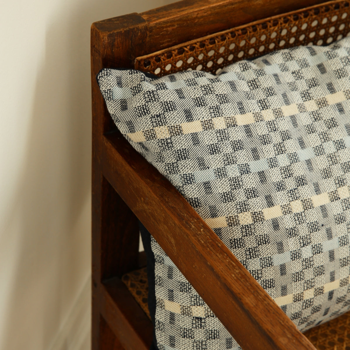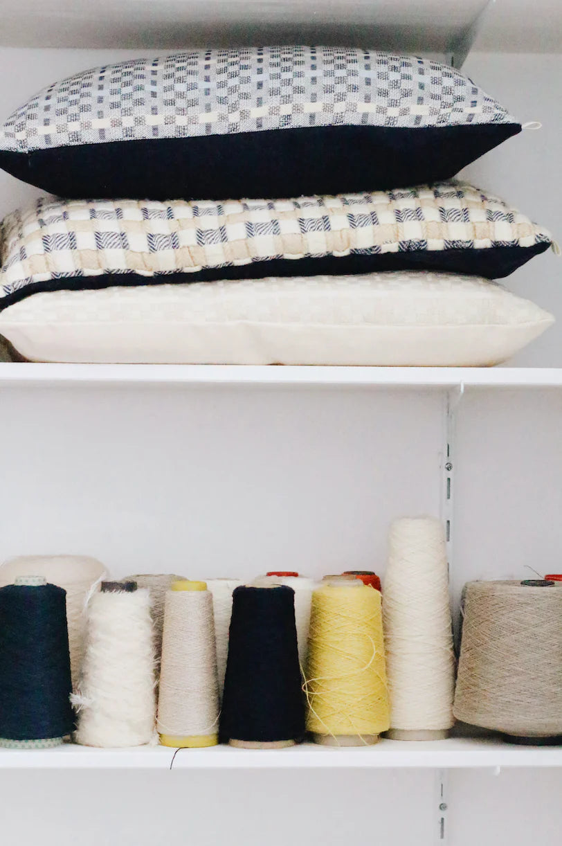 Ces coussins upcyclés sont issus d’une rencontre entre deux univers : les tissages de l’artiste Justine Gaignault et les chutes de tissus en matières naturelles de Panac.