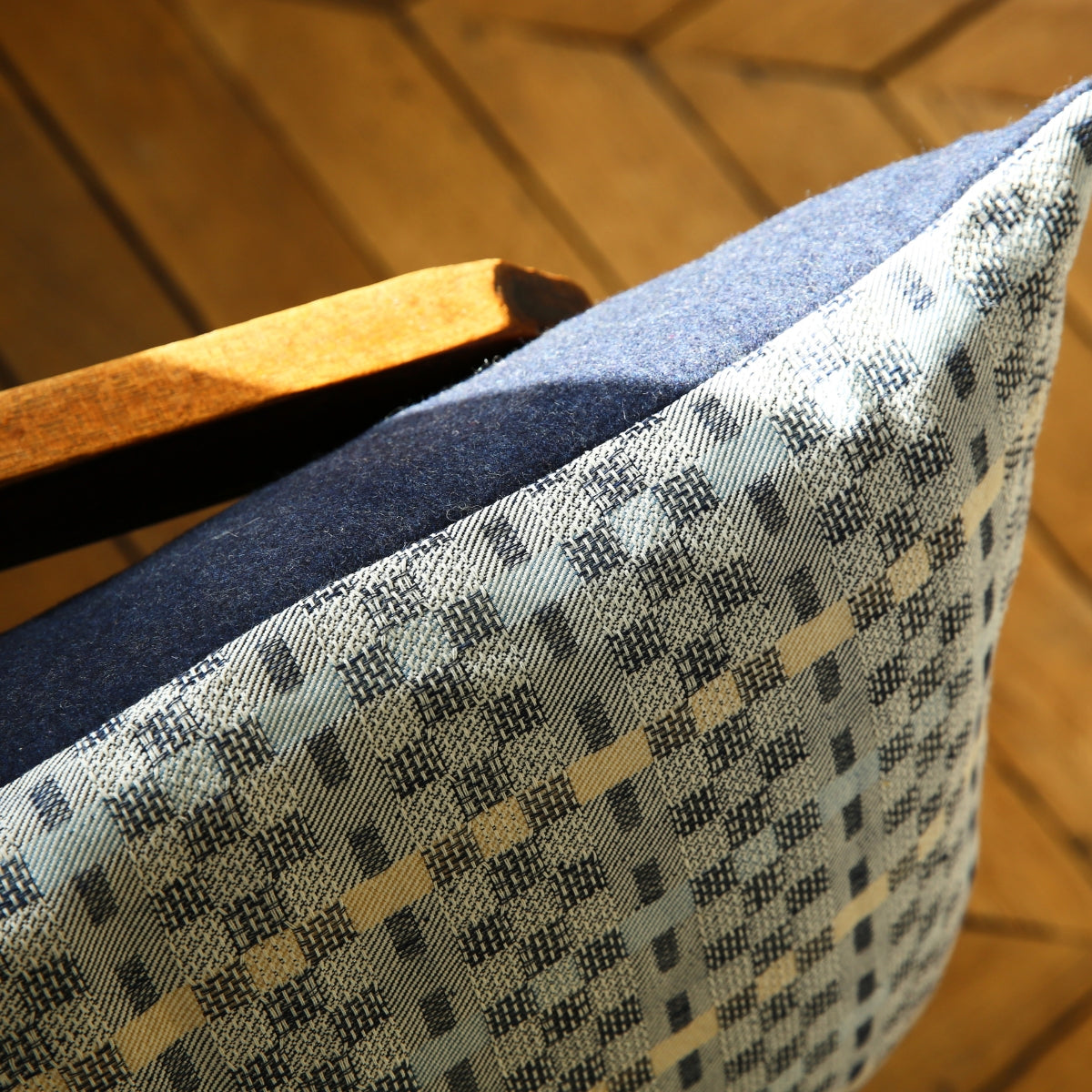 Les tissages de Justine Gaignault sont créés à partir de matières naturelles françaises : le lin et la laine qui se mêlent dans les Jacquard.
