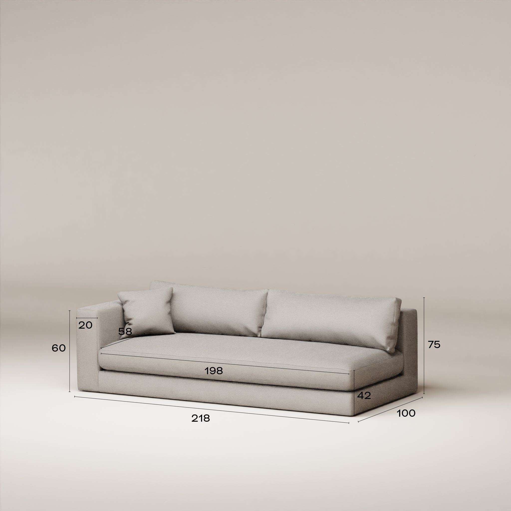 Bellechasse light Module 3,5 places profondeur 100 cm - Gauche (face au canapé) - Laine feutrée Natural