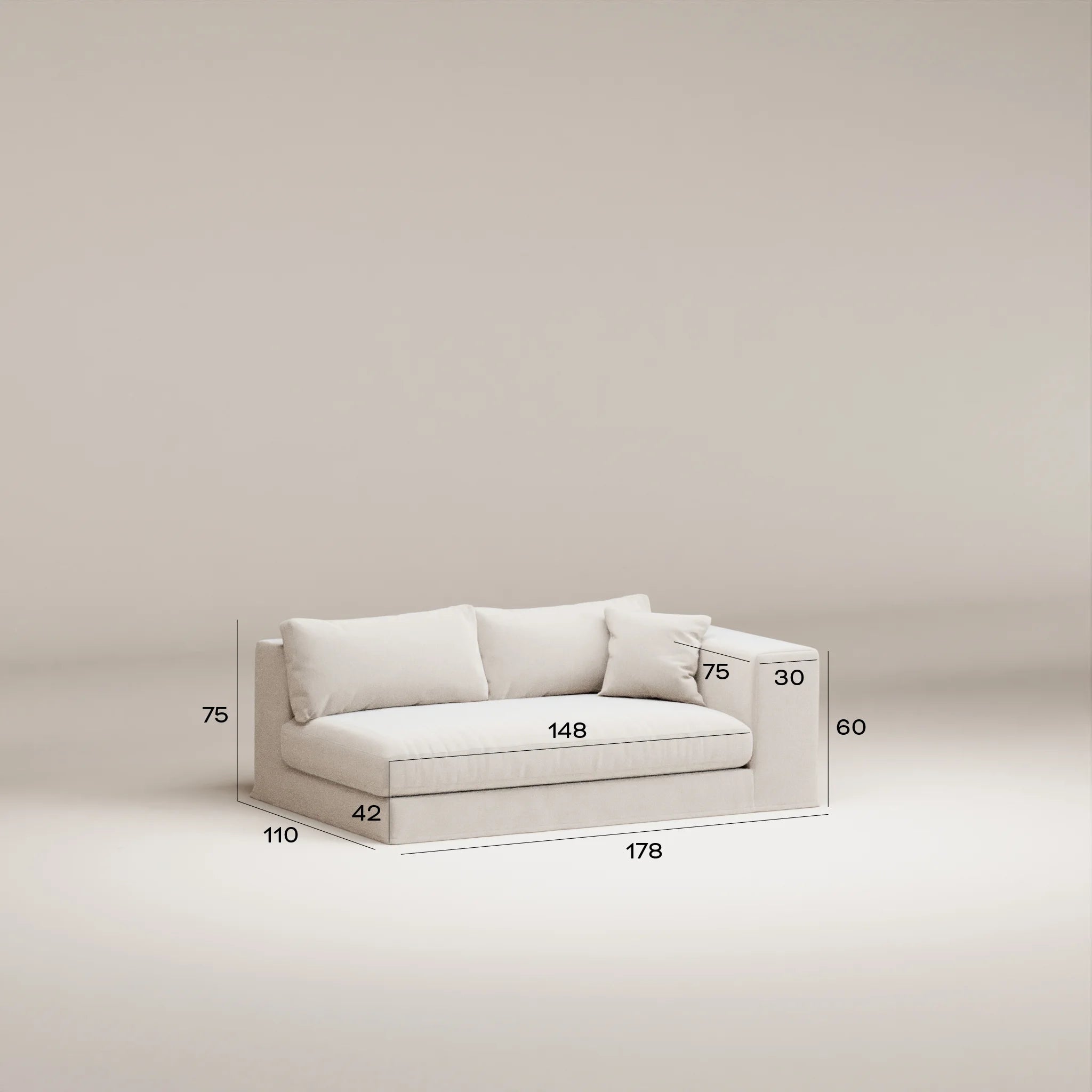 Bellechasse Module déhoussable 2,5 places profondeur 110 cm - Droite (face au canapé) - Laine feutrée Mint